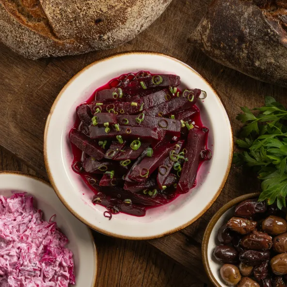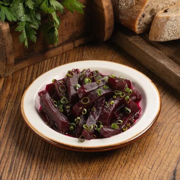 סלק מבושל ומתובל בעדינות לסלט צבעוני ומתוק טבעית.