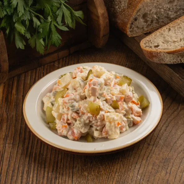 קוביות תפוח אדמה רכות ברוטב קרמי עדין לסלט קלאסי ומנחם.