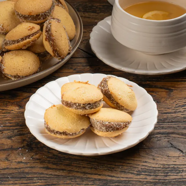 עוגיות חמאה עדינות במילוי ריבת חלב עם נגיעות שבבי קוקוס.