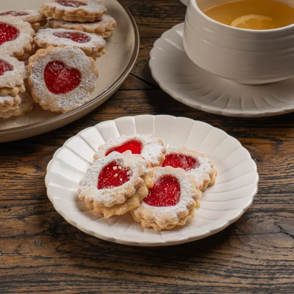 2 מארזים של עוגיות ב-90 ש״חעוגיות חמאה עדינות בצורת פרח עם לב ריבה מתוק וצבעוני, מושלמות לפינוק קטן בכל רגע. כ-300 גרם